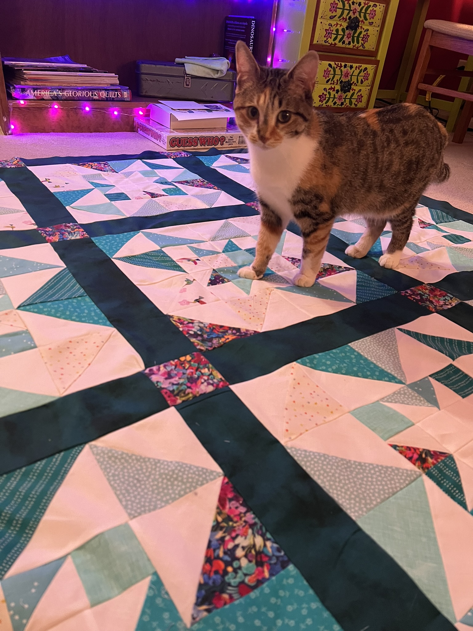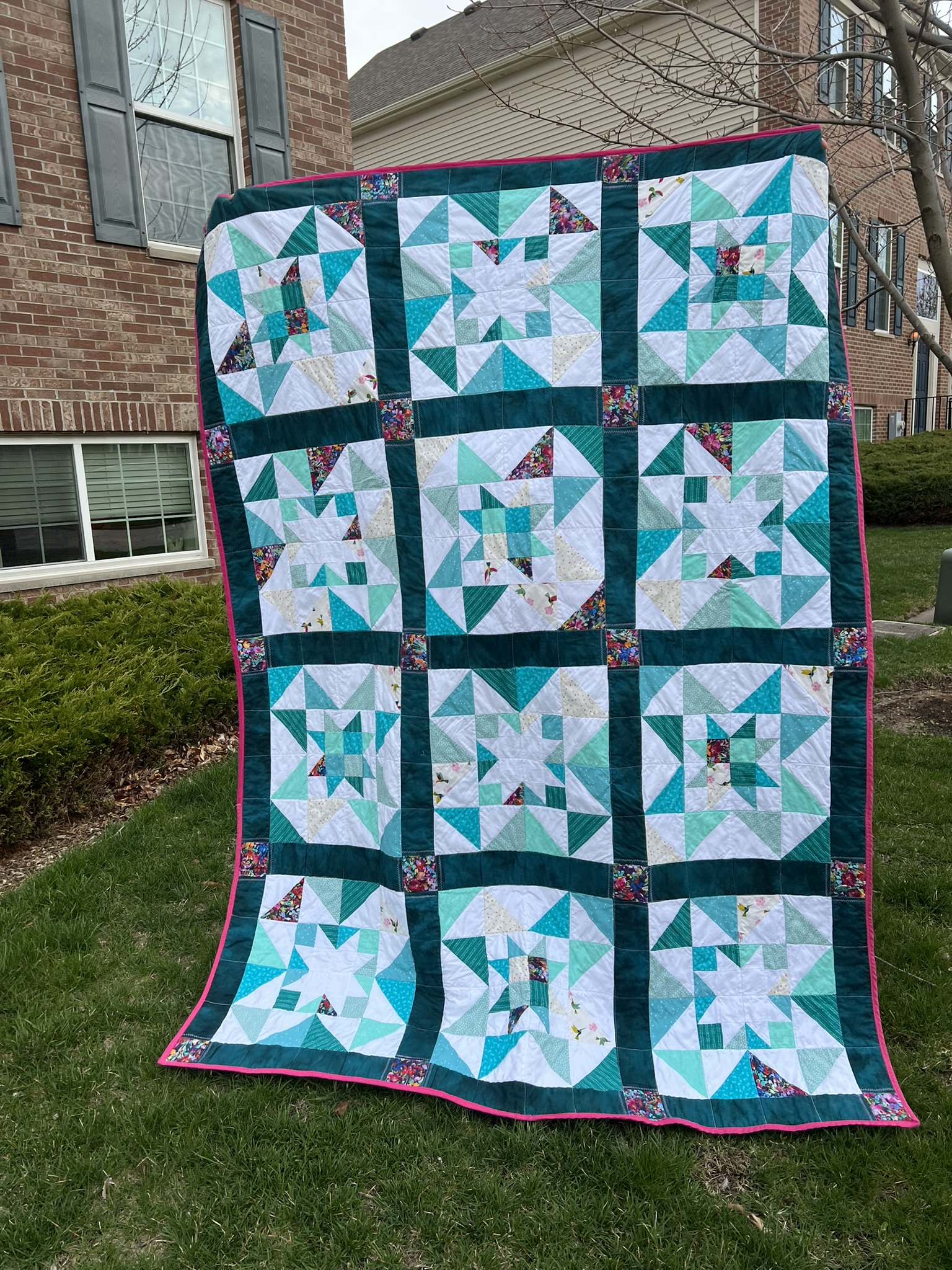 This was the first quilt I completed using my craft room! Now that I had a quilt design wall to put my fabric up on, I was able to visualize the design much better.
