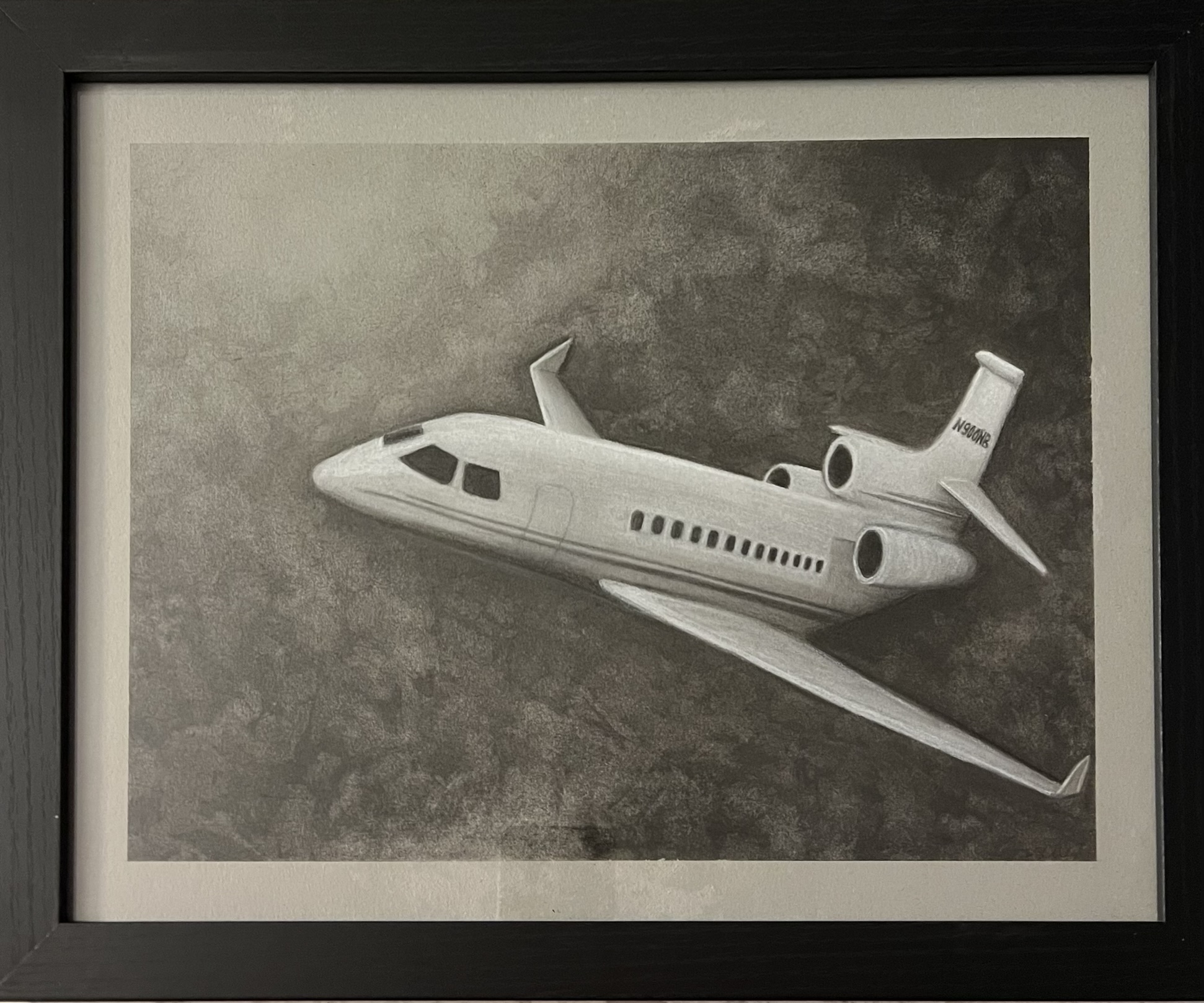 Dassault Falcon 7X; Charcoal on paper. 2023.